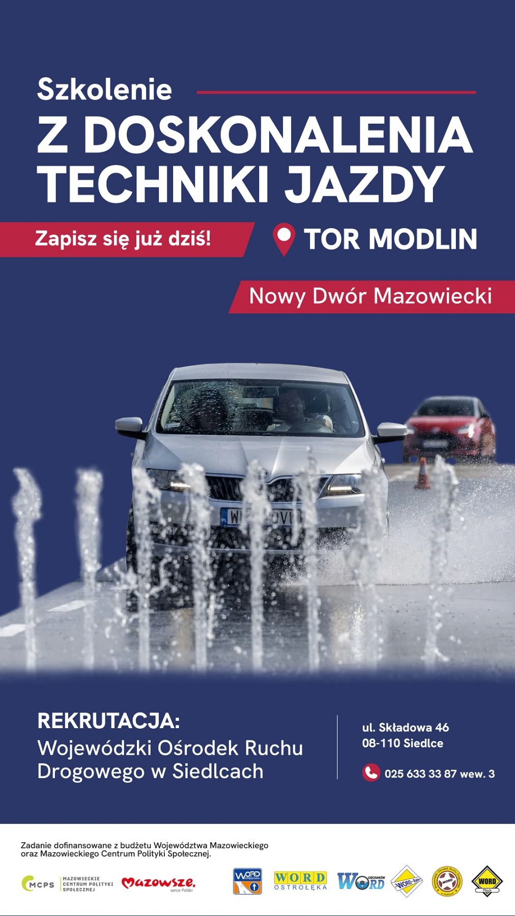 Zgłoszenia na szkolenie wraz z wypełnionymi załącznikami, przyjmujemy w Wojewódzkim Ośrodku Ruchu Drogowego w Siedlcach przy ul. Składowej 46 w godz. 8.00-16.00, w Oddziale Terenowym w Garwolinie, Al. Legionów 48 lub przesłane na adres e-mail szkolenia@word.siedlce.pl